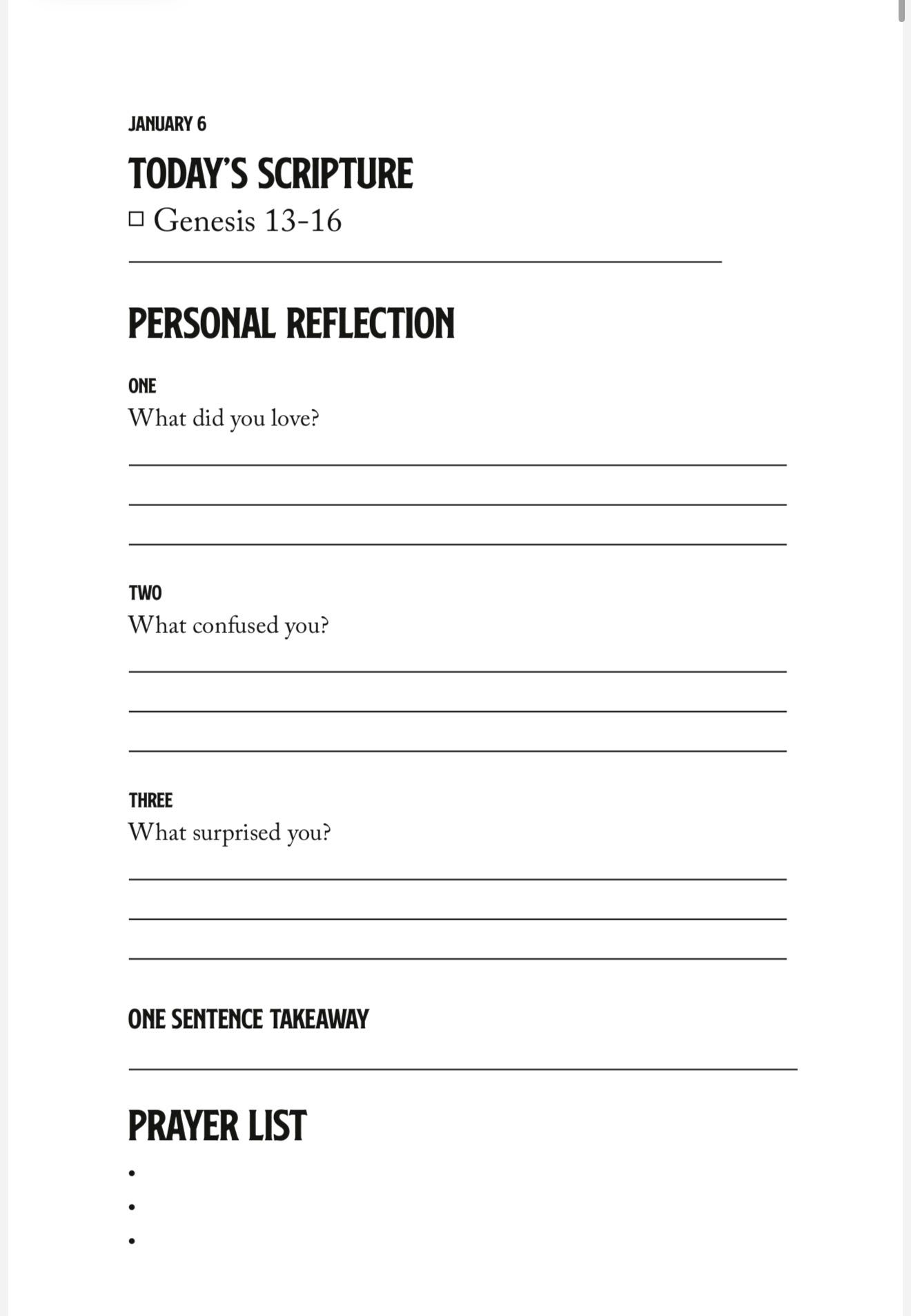 Daily Reflections - There is a simplicity to the daily reflection. The same three questions every day. These questions are structured to help spur your imagination and encourage honesty with the Bible.